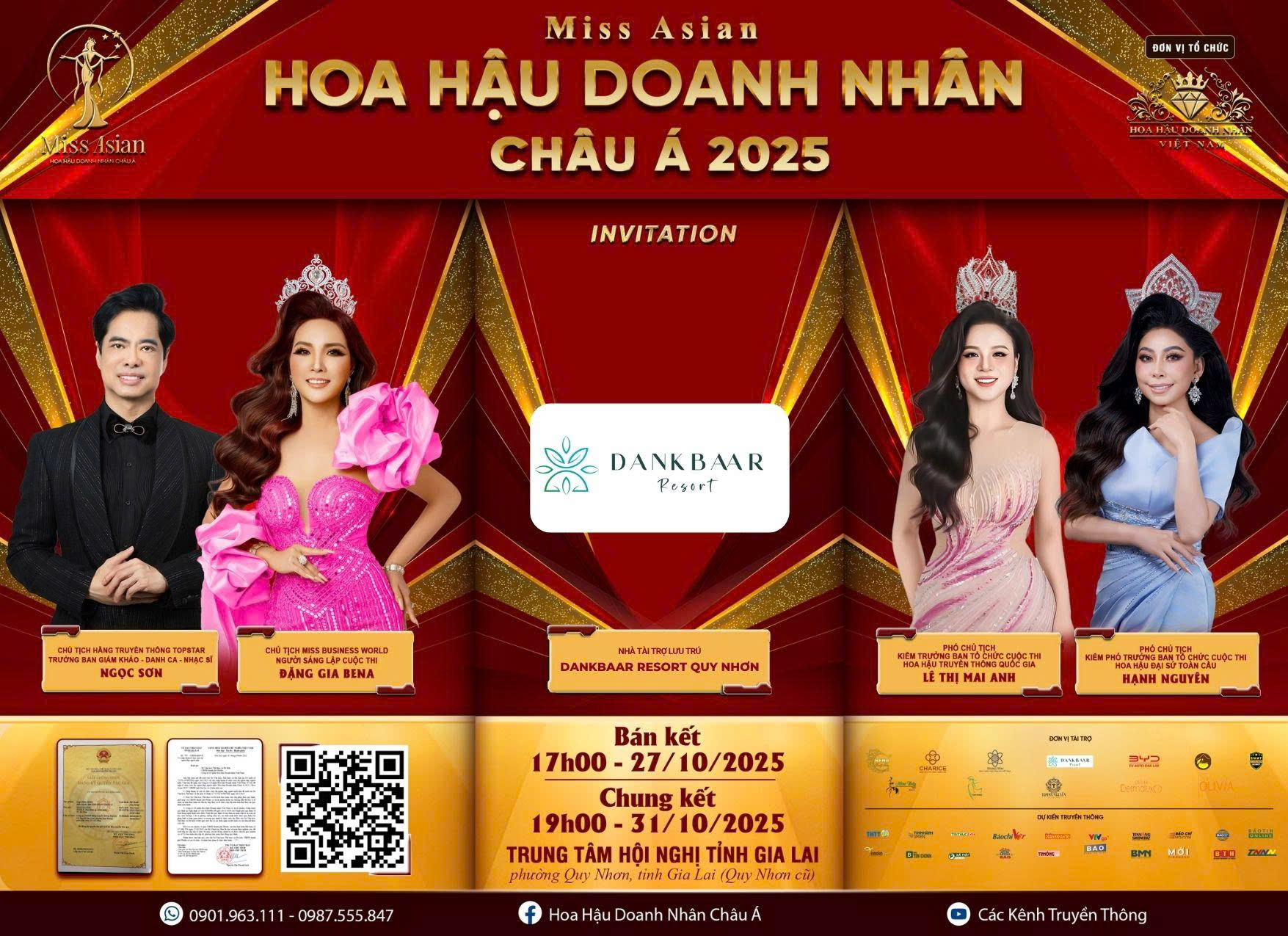 Dưới sự dẫn dắt của Chủ tịch Miss Business World Đặng Gia Bena đêm chung kết Hoa hậu Doanh nhân Châu Á 2025 tổ chức tại Trung tâm Hội nghị tỉnh Gia Lai (số 01 Nguyễn Tất Thành, phường Quy Nhơn) hứa hẹn mang đến không gian hội tụ của vẻ đẹp hội nhập, trí tuệ dẫn lối và bản lĩnh vươn tầm châu lục, khắc sâu dấu ấn trong lòng khán giả cũng như trên hành trình phát triển và tỏa sáng của mỗi nữ doanh nhân Việt.